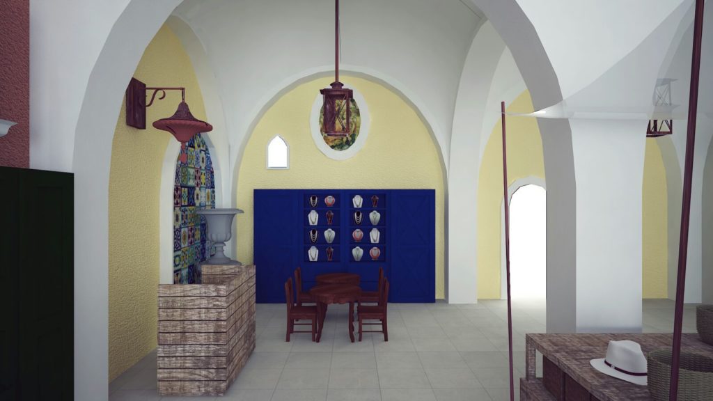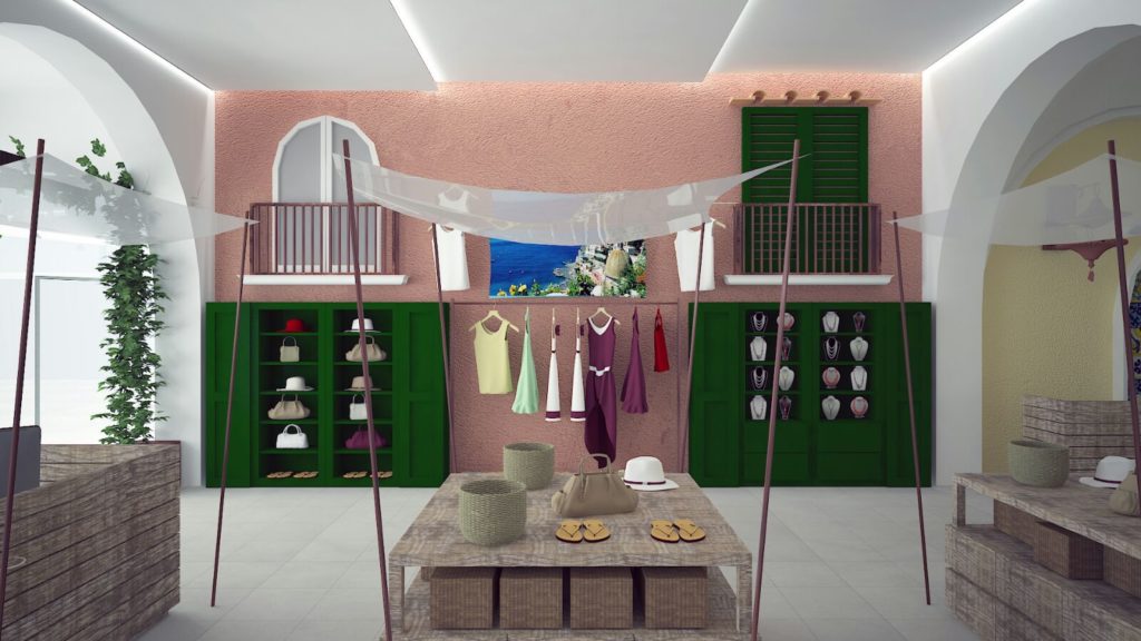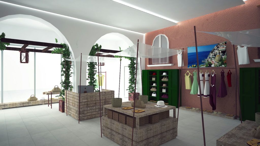 All’interno della galleria commerciale del complesso alberghiero di Fuerteventua ” Hotel Sensimar Royal Palm Resort & Spa”, un negozio di accessori e moda Positano ricrea la tipica atmosfera di un ambiente della costiera partenopea ove i complementi, i banchi, gli arredi, i colori e le finiture richiamano quelli di una piazzetta mediterranea e della vita tipica di un mercatino all’aperto.